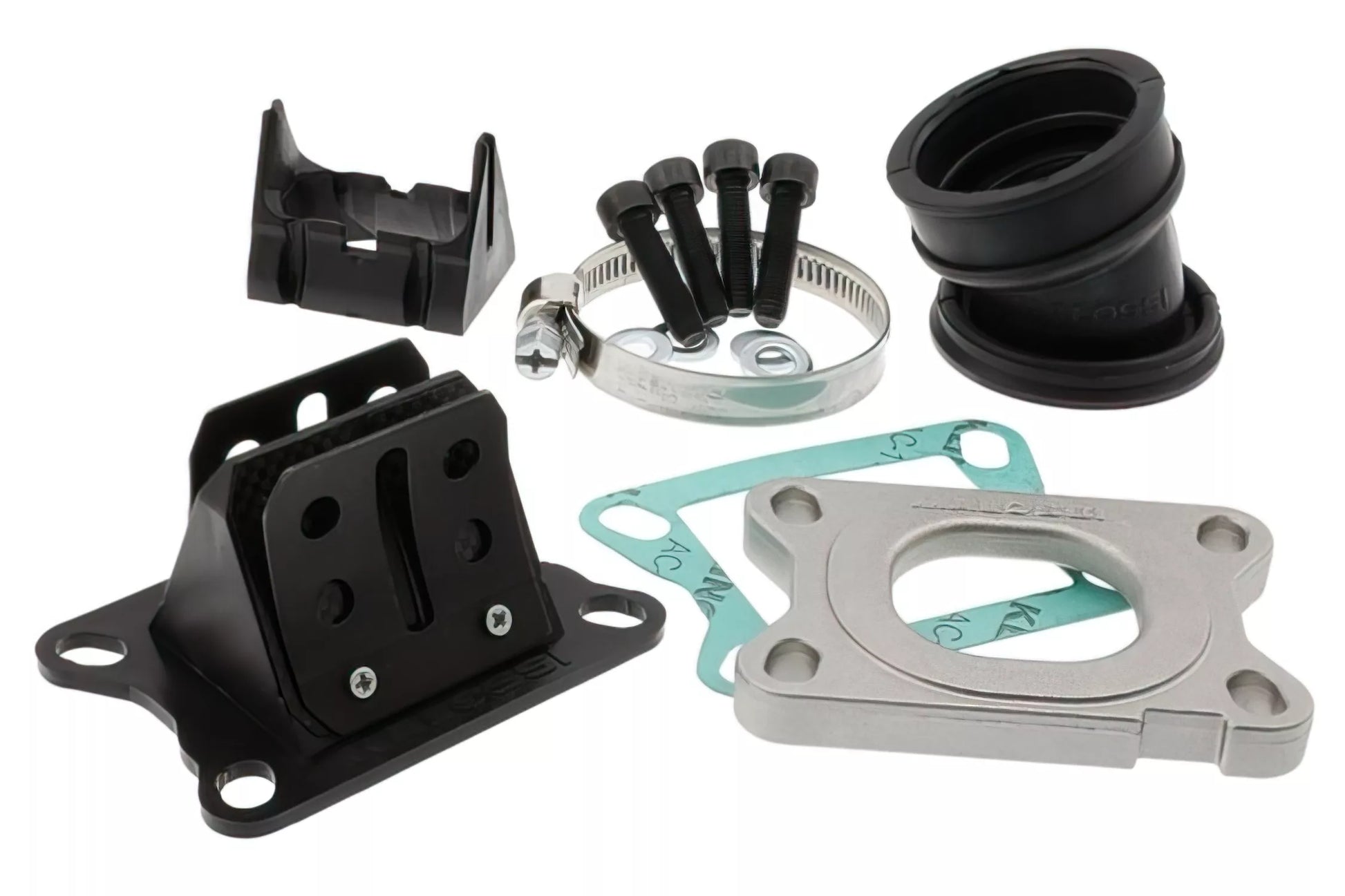 Från legendariska italienska trimtillverkaren Malossi: Ett komplett och justerbart insugskit med reedventil för Minarelli AM6 och Derbi Euro2 / Euro3-motorer. Perfekt för dig som kör trimmat och vill ha maximalt flöde, med full flexibilitet i montering.