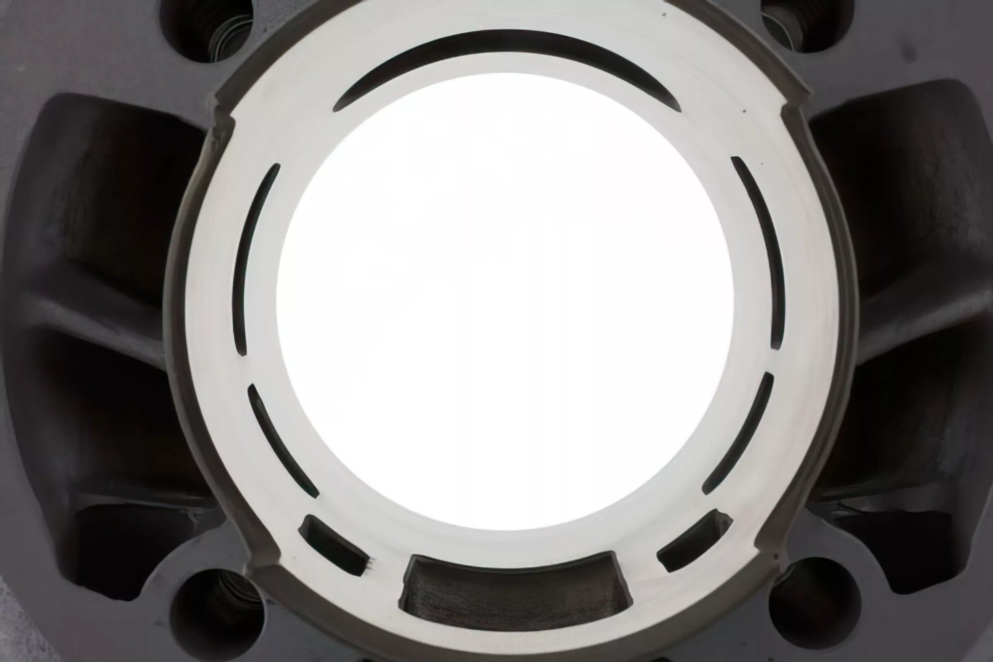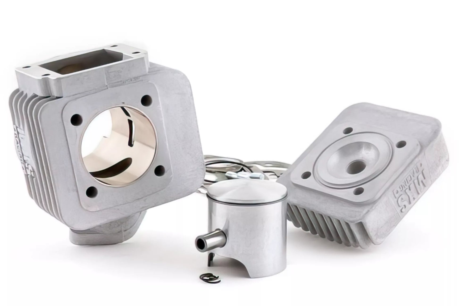 Cylindern är tillverkad i högkvalitativ aluminium och har en slitstark Nikasil-beläggning. Portningen består av 7 överströmmare och ett ovalt avgasport, vilket gör att du slipper den traditionella "bridged" designen som annars stryper flödet på grund av den trånga bultbilden på Minarelli horisontell. Kitet inkluderar en 1-rings kolv med 12mm kolvbult och ett högkompressions-topplock som är specialutvecklat för kitet.