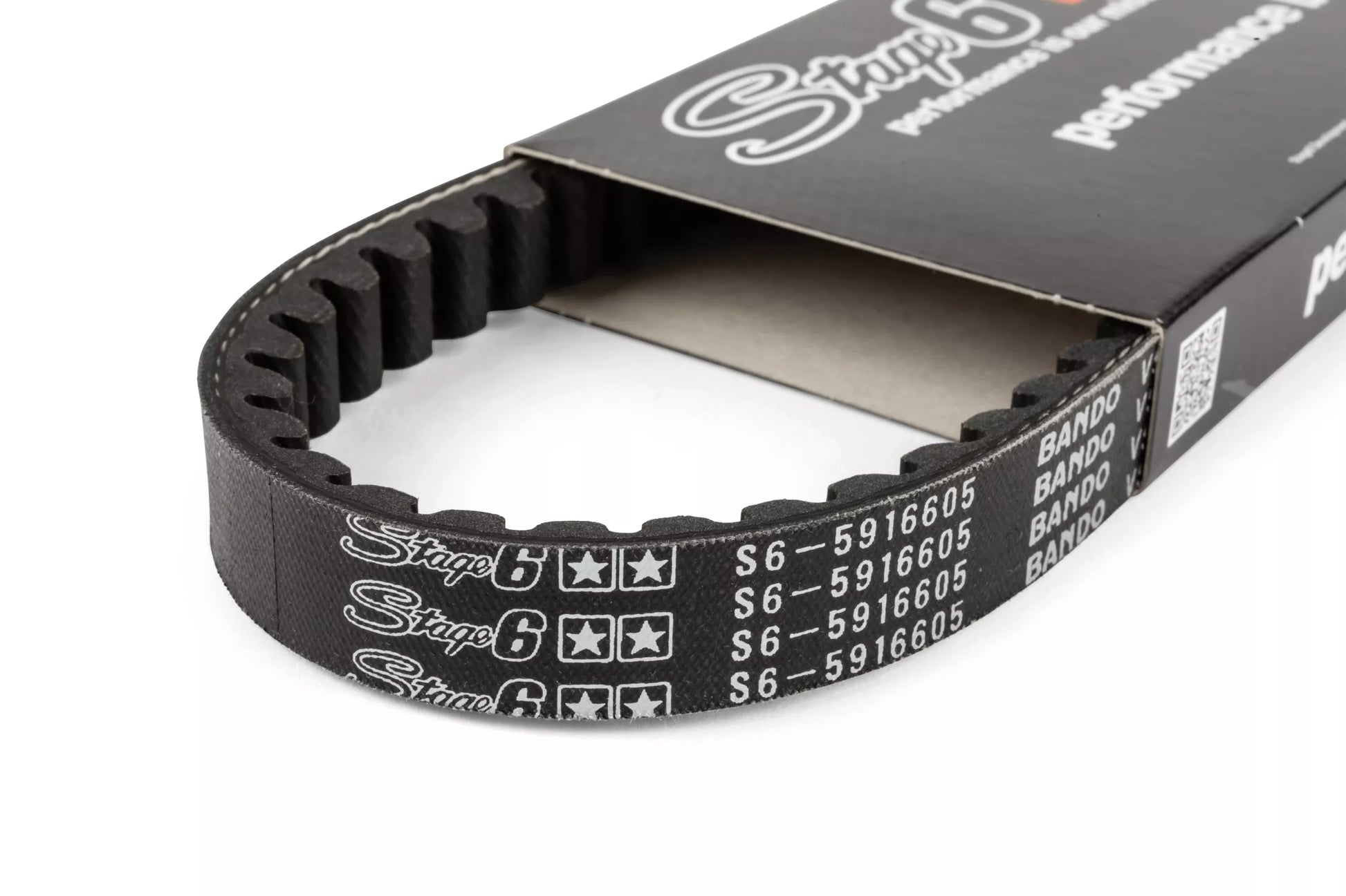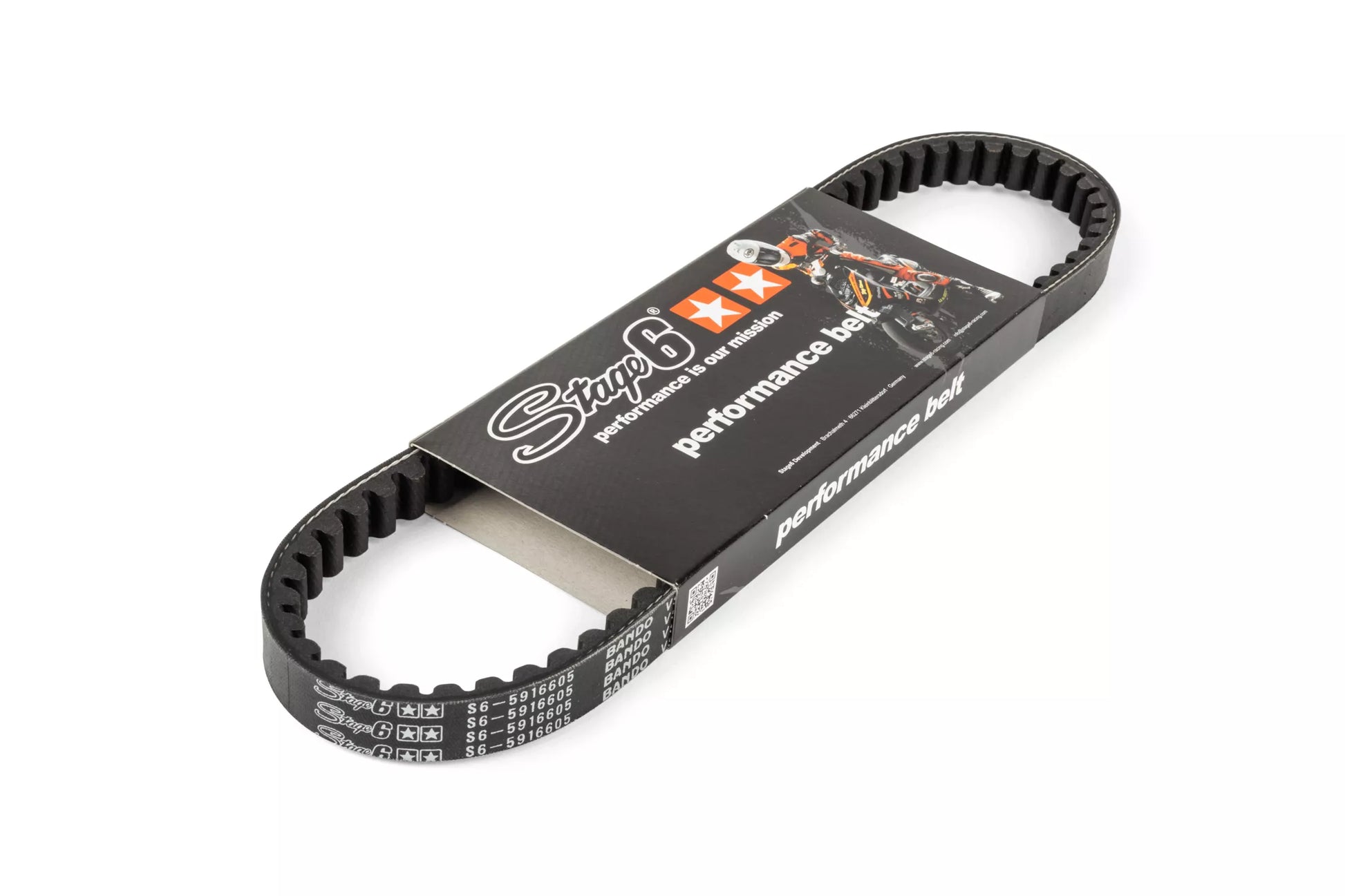 Stage6 Pro Belt är en förstärkt V-rem för Minarelli lång motor (t.ex. Yamaha Aerox, MBK Nitro), tillverkad av Bando i Japan – en av världens ledande tillverkare av drivremmar. Den är framtagen för att leverera maximal kraftöverföring mellan variator och koppling samtidigt som den erbjuder lång livslängd och optimal grepp.